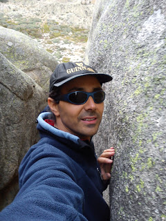 Llegados a la pradera, sacamos nuestro pan, nuestro jamón y la ensaladilla del Piti a la que dimos buena cuenta. Mientras comíamos retomamos la conversación política, pero de reojillo mirábamos la pared sur y a sus "muñecos" escaladores que llenaban su espacio. Abandonamos la pradera, dirección a Cantocochino bajando por la normal (hacia Gran Cañada-Cancho de los Brezos) no sin antes reconocernos en voz alta 20 años atrás hablando de los mismos temas (política, sexo, religión...) acurrucados en nuestros sacos de dormir bajo las piedras que nos daban cobijo por esa noche. Y es que amigos ha llovido mucho desde que Piti y yo salimos por primera vez a la Pedriza, aún recuerdo con gran nitidez mi primer día de escalada y la sensación de vértigo a lo desconocido, ese nerviosismo que me vuelve más inquieto si cabe, uhmmm!! que divertido!! que de años!!